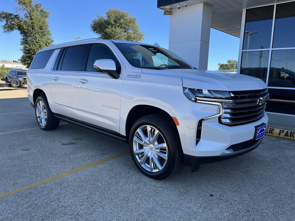 CARFAX One-Owner. Iridescent Pearl Tricoat 2023 Chevrolet Suburban High Country 4WD 10-Speed Automatic with Overdrive EcoTec3 6.2L V8 **4WD**, **CARFAX 1 OWNER**, **NON SMOKER**, **NAVIGATION**, **REAR VIEW CAMERA**, **PANORAMIC MOONROOF**, **REMOTE START**, **BOSE PREMIUM AUDIO SYSTEM**, **SECOND ROW CAPTAINS CHAIRS**, **HEATED/COOLED SEATS**, **POWER RUNNING BOARDS**, **POWER LIFTGATE**, **3RD ROW SETTING**, 10 Speakers, 2-Speed Active Electronic AutoTrac Transfer Case, 4-Wheel Disc Brakes, ABS brakes, Adaptive Cruise Control, Adaptive suspension, Advanced Trailering Package, Air Conditioning, Air Ride Adaptive Suspension, AM/FM radio: SiriusXM with 360L, Auto High-beam Headlights, Auto-dimming door mirrors, Auto-leveling suspension, Automatic temperature control, Bose 10-Speaker Surround w/CenterPoint, Brake assist, Bright Front & Rear Door Sill Plates, Bumpers: body-color, Chrome Door Handles w/Body-Color Strip, Delay-off headlights, Driver & Front Outboard Passenger Airbags, Dual Exhaust System, Dual front impact airbags, Dual front side impact airbags, Dual-Pane Power Panoramic Sunroof, Electronic Stability Control, Emergency communication system: OnStar and Chevrolet connected services capable, Enhanced Automatic Emergency Braking, Enhanced Driver Information Center, Exterior Parking Camera Rear, Extra Capacity Cooling System, Four wheel independent suspension, Front anti-roll bar, Front dual zone A/C, Fully automatic headlights, Hands-Free Rear Power Programmable Liftgate, Heads-Up Display, Heated door mirrors, High Country Deluxe, Hill Descent Control, Hitch Guidance w/Hitch View, Integrated Trailer Brake Controller, LED Daytime Running Lamps, Low tire pressure warning, Magnetic Ride Control Suspension, Max Trailering Package, Memory seat, Memory Settings, Navigation System, Occupant sensing airbag, Overhead airbag, Panic alarm, Power driver seat, Power Liftgate, Power steering, Power windows, Power-Retractable Assist Steps, Premium audio system: Chevrolet Infotainment 3 Premium, Rear air conditioning, Rear anti-roll bar, Rear window defroster, Remote keyless entry, Remote Start, SiriusXM Radio w/360L, Smart Trailer Integration Indicator, Speed control, Speed-sensing steering, Steering wheel memory, Steering wheel mounted audio controls, Traction control, Trailer Side Blind Zone Alert, Universal Home Remote, Wrapped Steering Wheel.