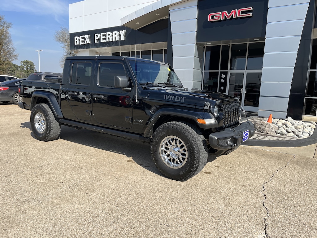 CARFAX One-Owner. Black Clearcoat 2022 Jeep Gladiator Willys 4WD 8-Speed Automatic 3.6L V6 24V VVT **4WD**, **CARFAX 1 OWNER**, **REAR VIEW CAMERA**, **REMOTE START**, 2-Door Passive Entry, Front Door Locks, 4-Wheel Drive Decal, 97 MPH Vehicle Max Speed Calibration, Air Conditioning w/Auto Temperature Control, Anti-Spin Differential Rear Axle, Automatic Headlamps, Black Grille, Body Color Fender Flares (2-Piece), Bridgestone Brand Tires, Cluster 7.0" TFT Color Display, Convenience Group, Daytime Running Lamp System, Daytime Running Lamps LED Accents, Deep Tint Sunscreen Windows, For More Info, Call 800-643-2112, Front 1-Touch Down Power Windows, Front Heavy Duty Red Accent Shock Absorbers, Front LED Fog Lamps, GPS Antenna Input, Leather Wrapped Steering Wheel, LED Headlamp & Fog Lamp Group, LED Premium Reflector Headlamps, Mold In Color Bumper w/Gloss Black, MOPAR All-Weather Slush Mats, Power Heated Mirrors, Power Tailgate Lock, Protection Sill Rails, Quick Order Package 24W Willys, Rear Heavy Duty Red Accent Shock Absorbers, Remote Keyless Entry, Security Alarm, SiriusXM Radio Service, SiriusXM Satellite Radio, Speed Sensitive Power Locks, Sun Visors w/Illuminated Vanity Mirrors, Technology Group, Universal Garage Door Opener, Wheels: 17" x 7.5" Black Aluminum w/Gray Pad, Willys, Willys Hood Decal.